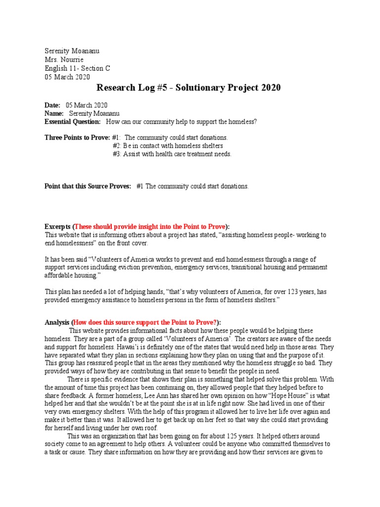 Senator kennedy announced the homelessness prevention and community revitalization act. Communicate clearly, effectively and imaginatively, selecting and adapting tone, style and register for different forms, purposes and audiences. The question(s) that come to mind when considering this issue are: Turn in final research paper with 3 more pages: Another question that comes to mind is, how do homeless people survive and what are their legal rights.